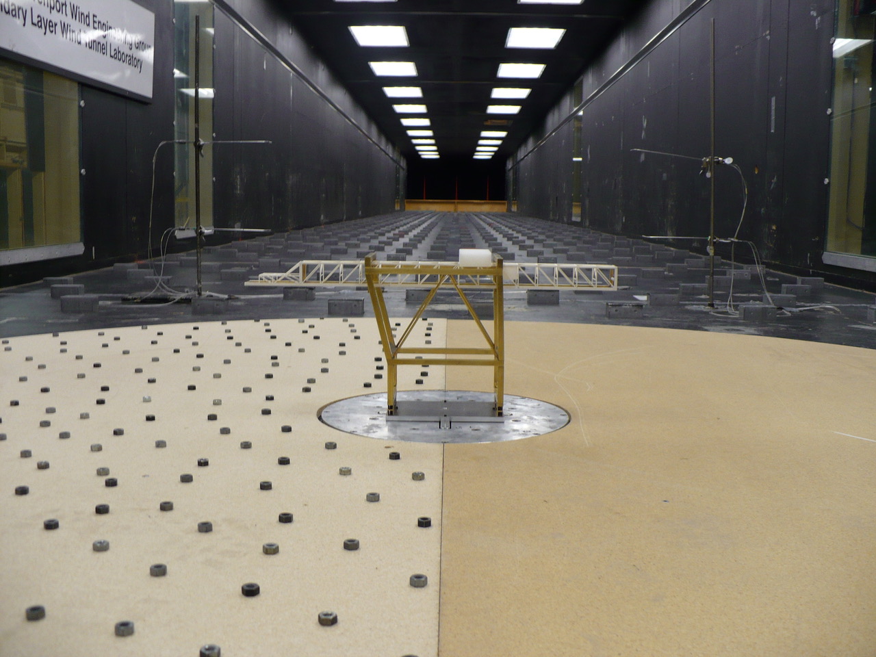 Caption: A wind tunnel test for a low profile ship-to-shore container crane.