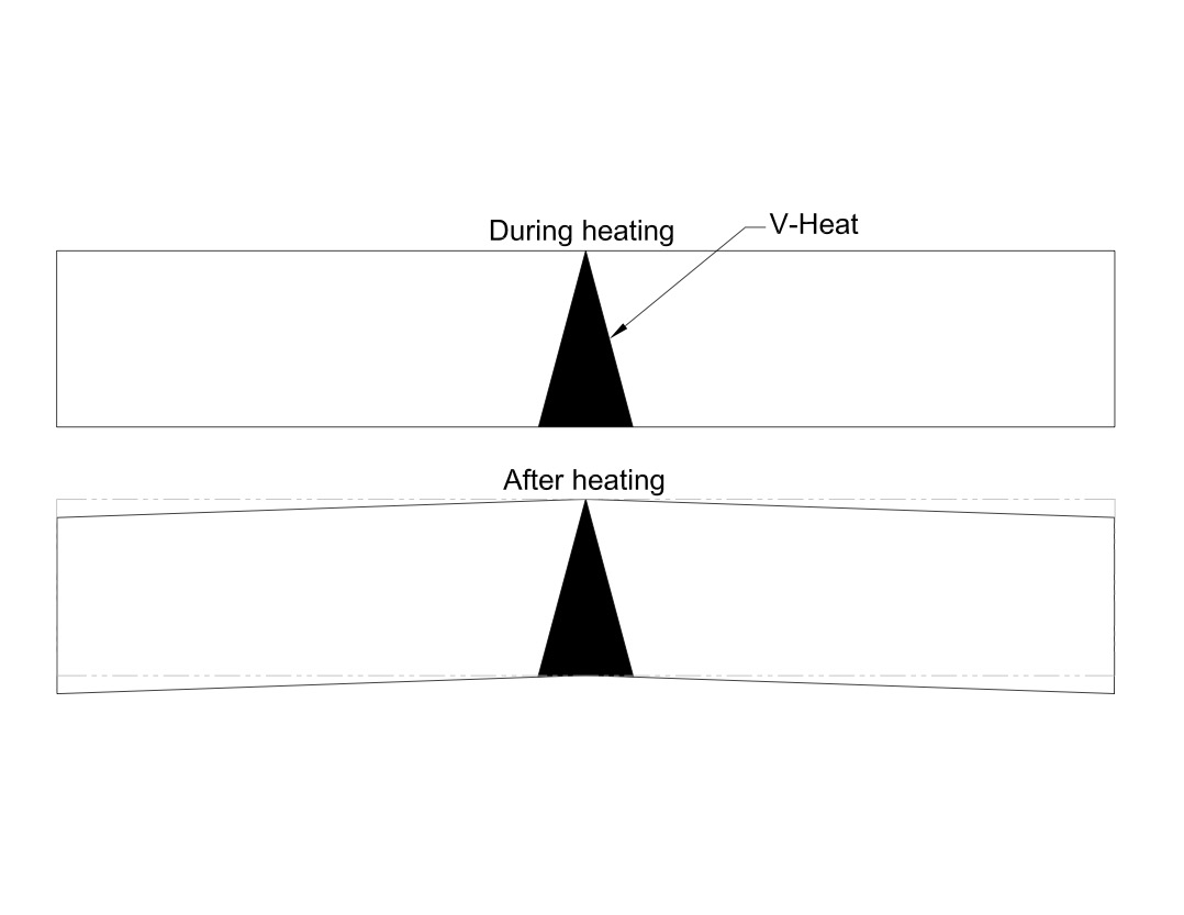 Caption: Applying a V-heat pattern to a steel plate causes it to bend.