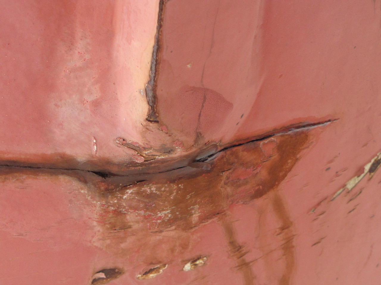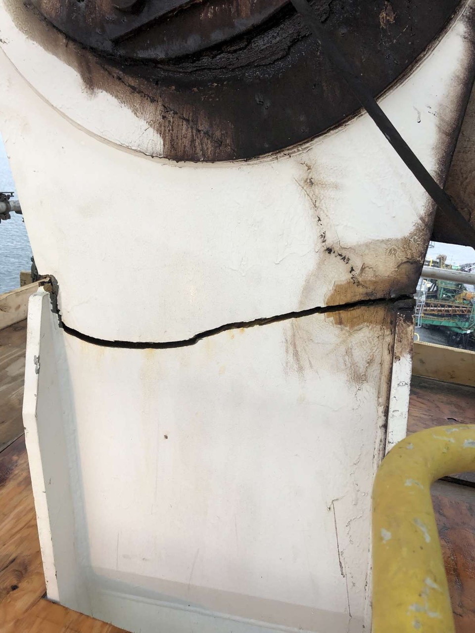 Caption: Stress concentrations on a container crane forestay led to crack formation.