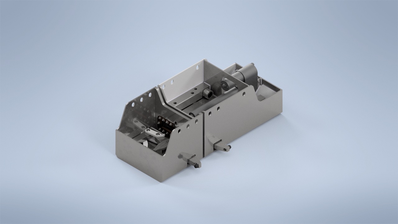 Caption: This was the first assembly of the interlocks. Here, the parts are being moved manually to test and inspect the assembly.