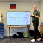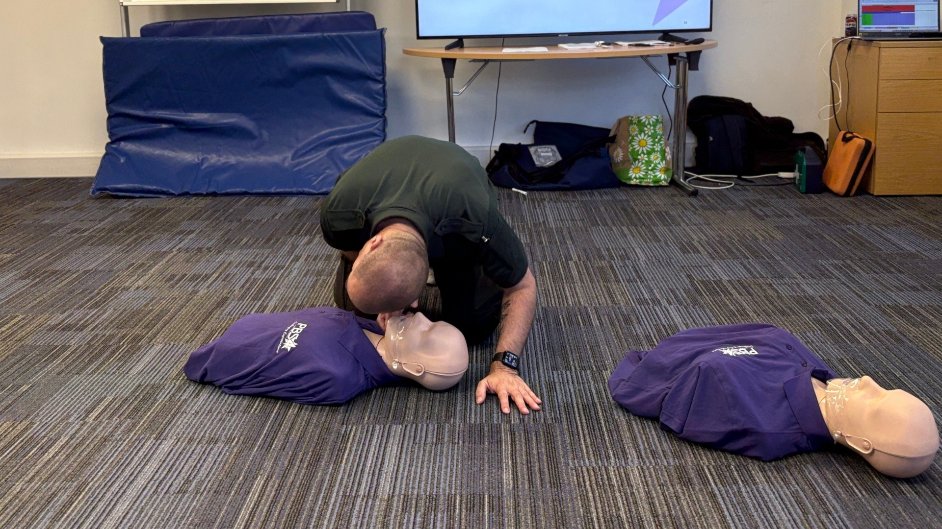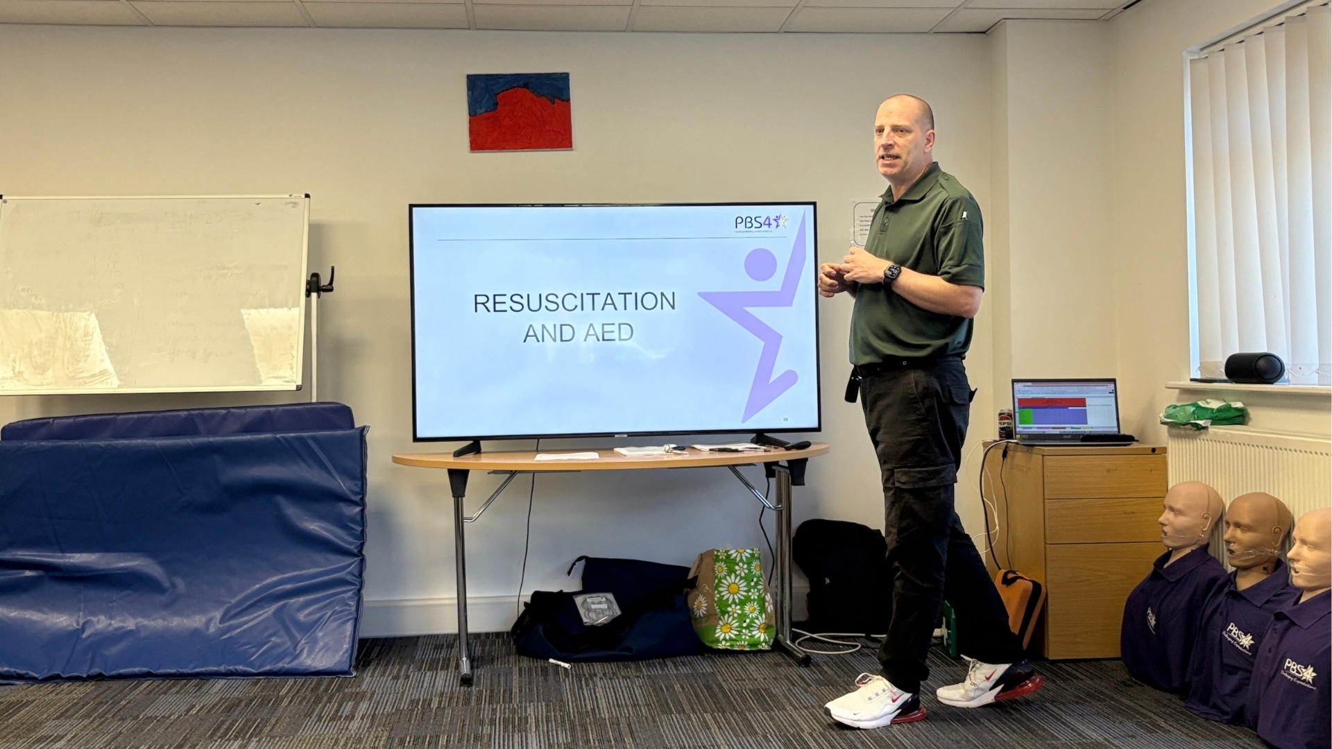 Caption: Trainer Mark Atkinson leads the Emergency First Aid at Work (EFAW) course.
