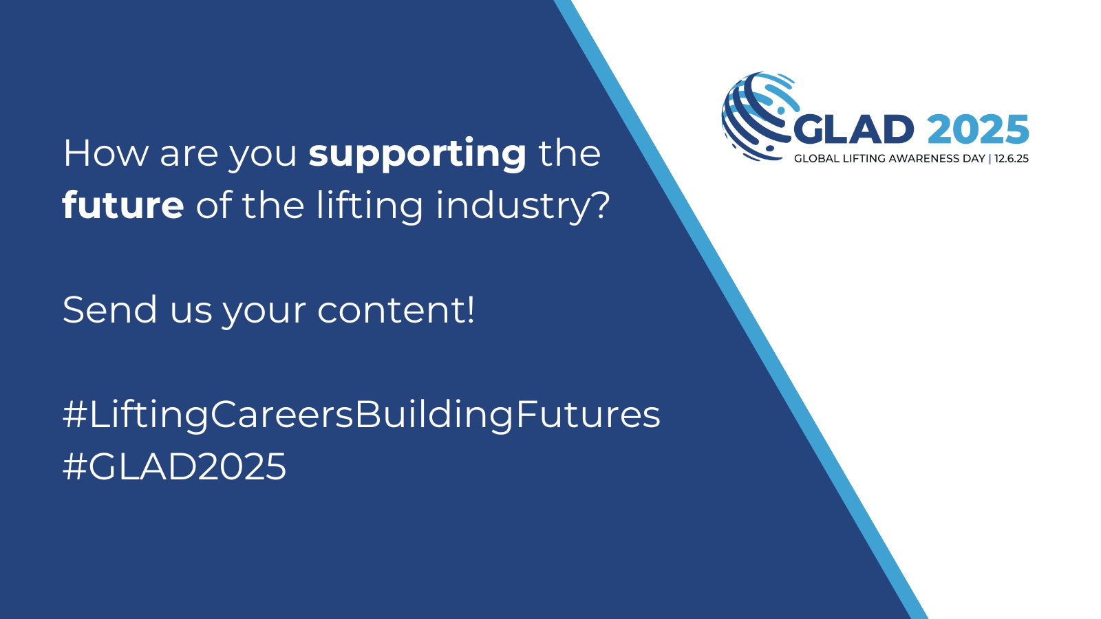 Use LEEA GLAD graphics and the hashtag — #GLAD2025 — to post specifically about how a company and its staff are supporting the future of the lifting industry and tag LEEA on LinkedIn (link below). Supporters can also use the GLAD LinkedIn profile picture frame to show their support during the day.