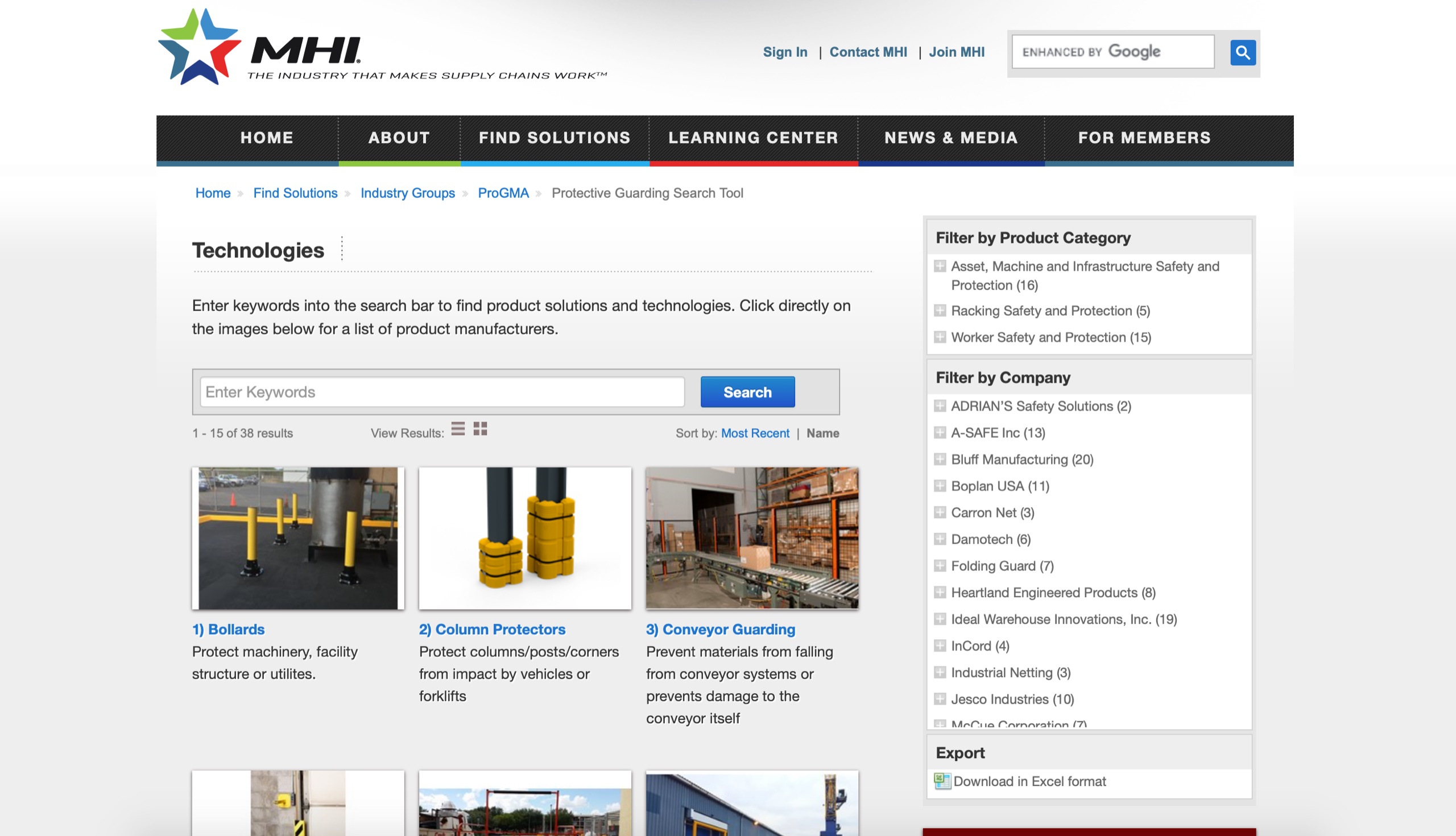 MHI’s Protective Guarding Manufacturers Association has launched the ProGMA Protective Guarding Search Tool—a search engine for protective guarding equipment.