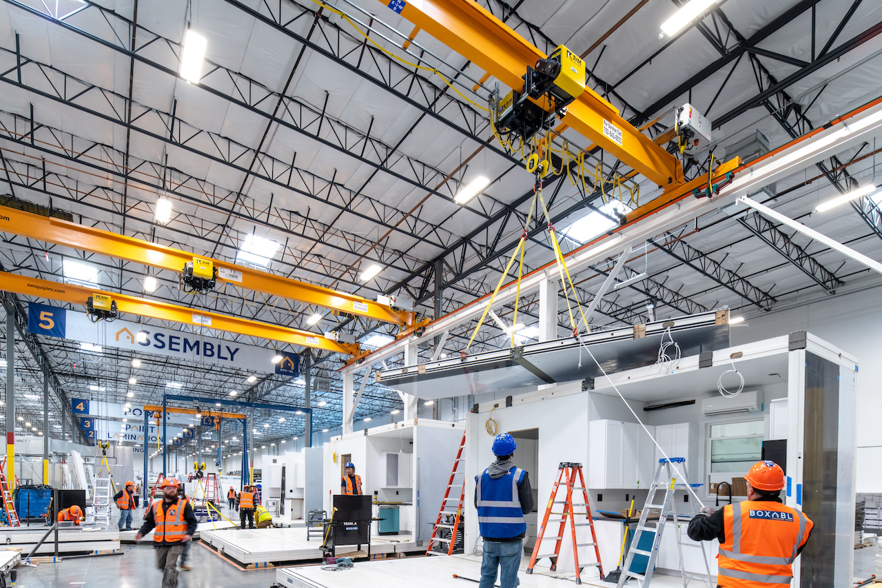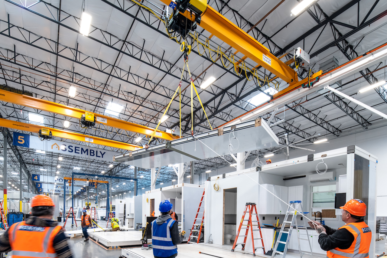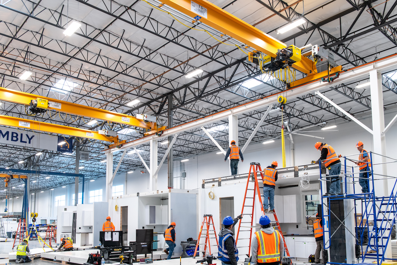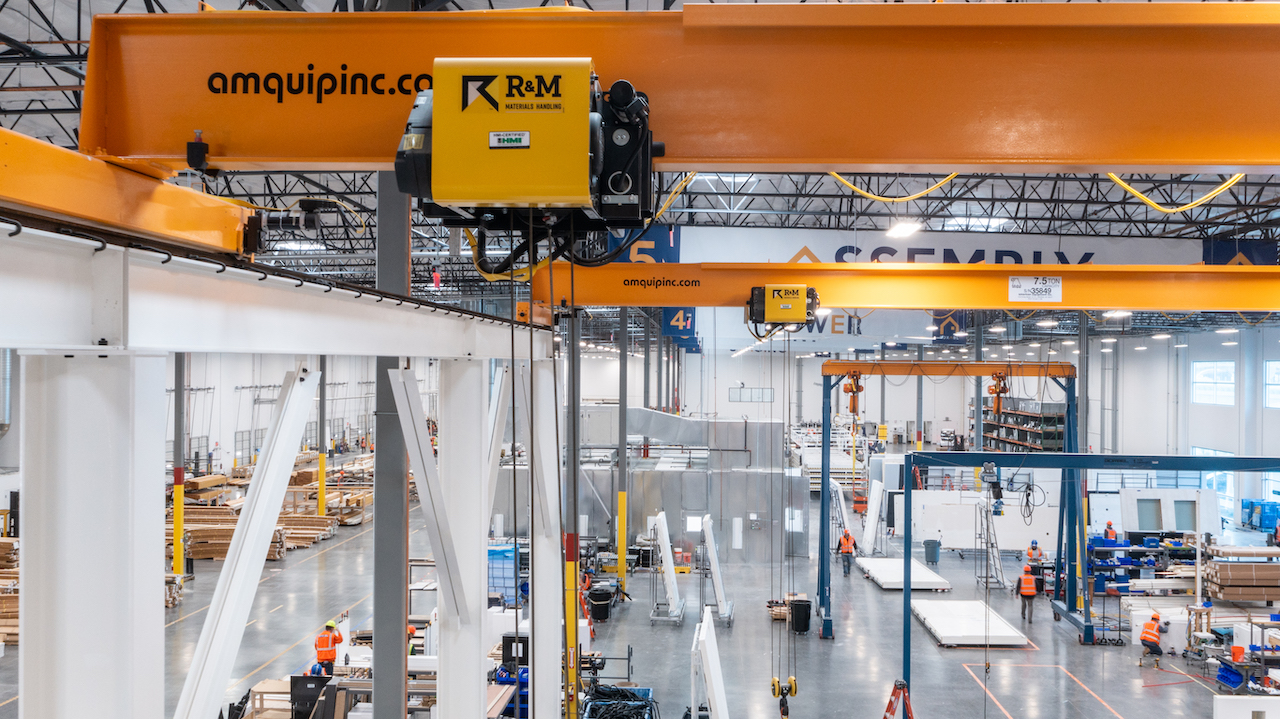 A unique factory that produces prefabricated homes is increasing efficiency thanks to overhead cranes from R&M Materials Handling, Inc.