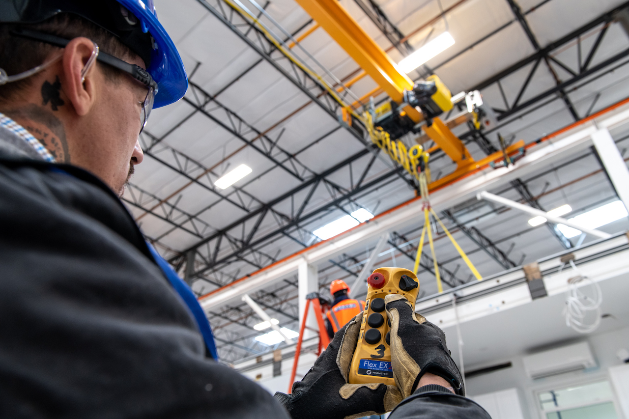 Boxabl uses assembly line principles and new building materials to produce upscale houses at a fast rate and low cost. Overhead crane and hoist manufacturer R&M Materials Handling, Inc. and their distributor American Equipment LLC partnered to deliver an overhead crane solution for Boxabl’s state of the art facility, based in Las Vegas.