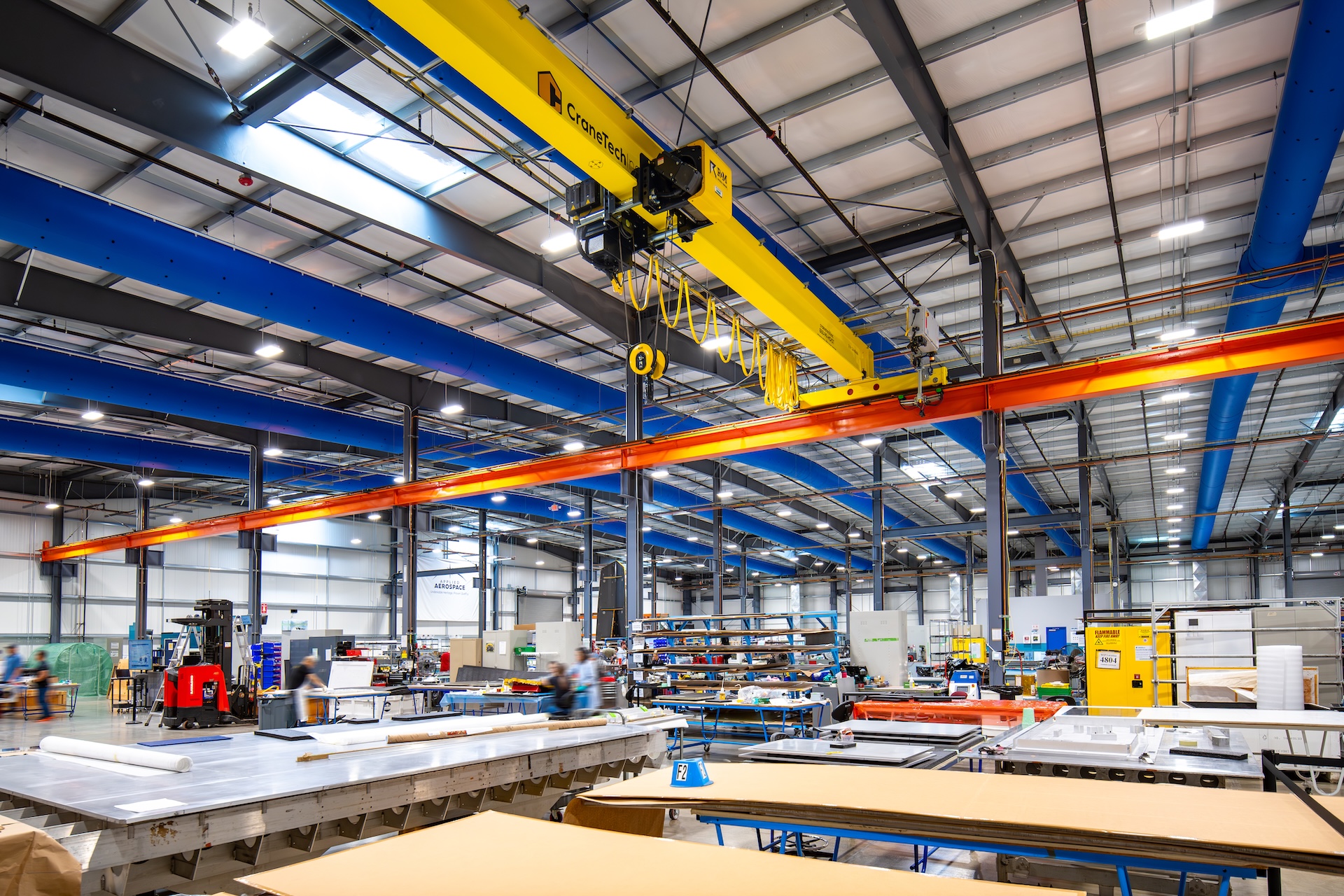 A 420,000 sq. ft. manufacturing facility sits on a 25-acre site that centers on the movement of aerospace parts and structures via tooling carts, forklifts and bridge cranes.