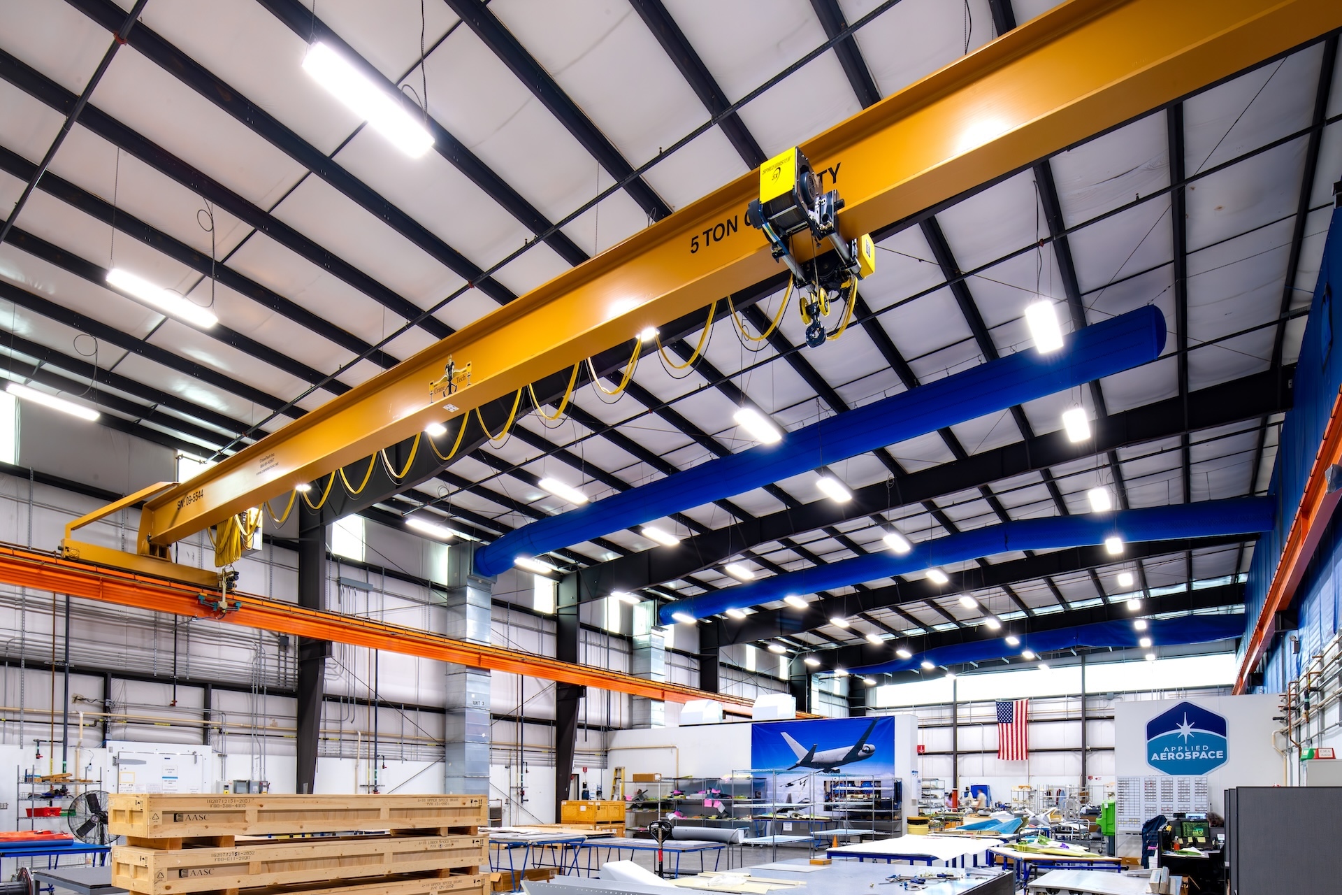 CraneTech, Inc. has installed overhead cranes and hoists at Applied Aerospace in Stockton, California.
