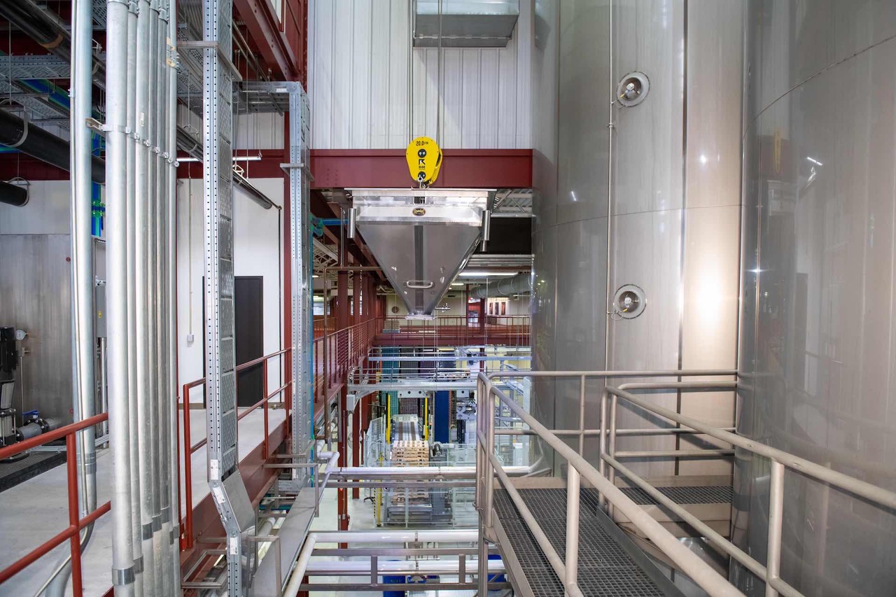 Caption: The brewery ceiling is 70ft and the crane sits right at the top.