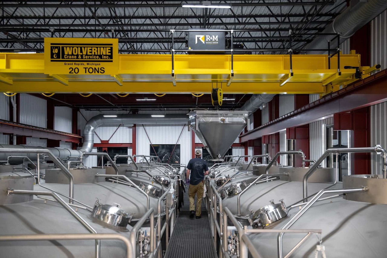 Founders Brewing called on Grand Rapids-based Wolverine Crane for its lifting expertise. Wolverine specializes in the design, manufacture and installation of overhead bridge cranes and the runway structures to support them. Established in 1994, it provides 125 cranes per year to clients across North America and for export.