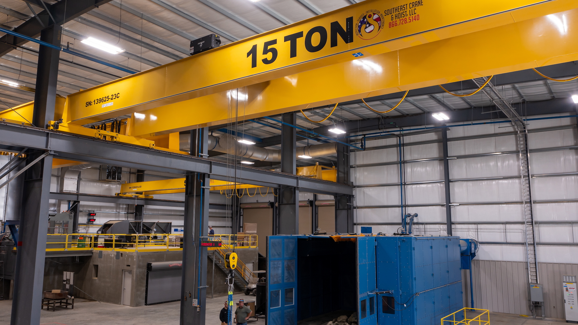 Southeast Crane & Hoist, LLC has installed four overhead cranes at Tyler Union Foundry’s new facility in Anniston, Alabama.