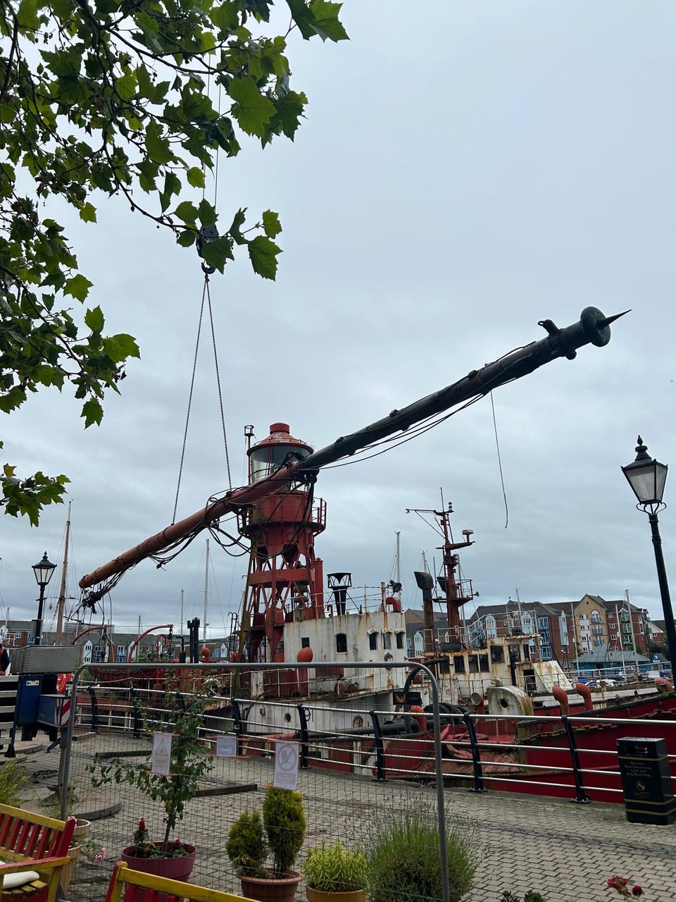 Following a site survey by RSS to replace the mast tensioners, it was discovered that both 87-year-old masts were in poor condition, so replacing the mast tensioners may have caused undue stresses and strains. Due to the proximity of the boat to a pedestrianised area, it was noted that the likelihood of failure and potential collapse onto that area would greatly increase with new wire tensioners acting on the masts.