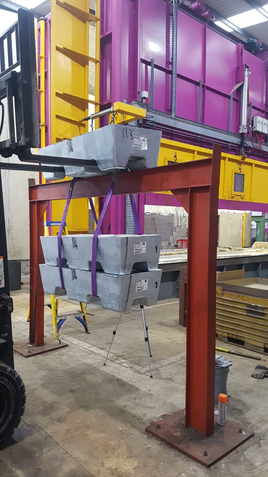 He added: “We had already tested the jigs / frames that sit on the stands—the product hangs from them—but here, to ensure ongoing compliance, we did new calculations for each stand and utilised Boliden zinc blocks that were already onsite because they were known weights. These weights were clearly stated on the side of each one. Using different numbers of blocks, and whatever lifting and rigging method suited the testing process, we were able to complete the tests efficiently and provide the necessary documentation to the customer.”