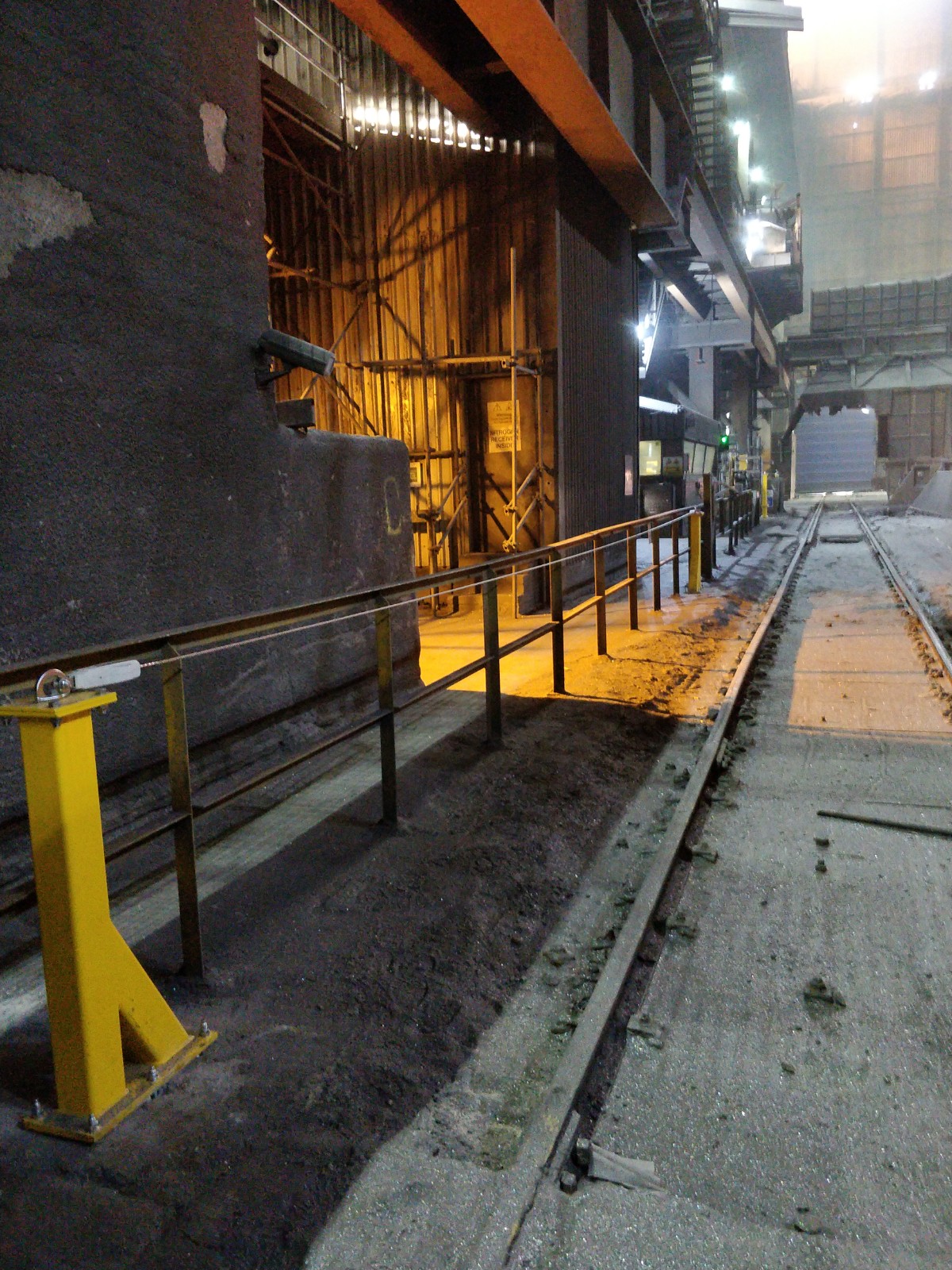 A torpedo car is employed on a railroad to transport molten metal from the BOS (basic oxygen steelmaking) plant and take it around the facility as part of the primary steelmaking process. The end user is required to perform planned inspection and maintenance on a rail that involves working at ground level, located next to an open pit with a risk of a fall.