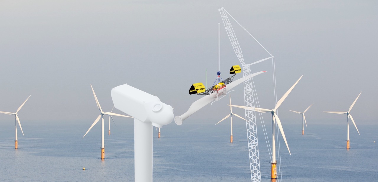 Caption: Windmaster is a load orientation device for wind turbine erection.