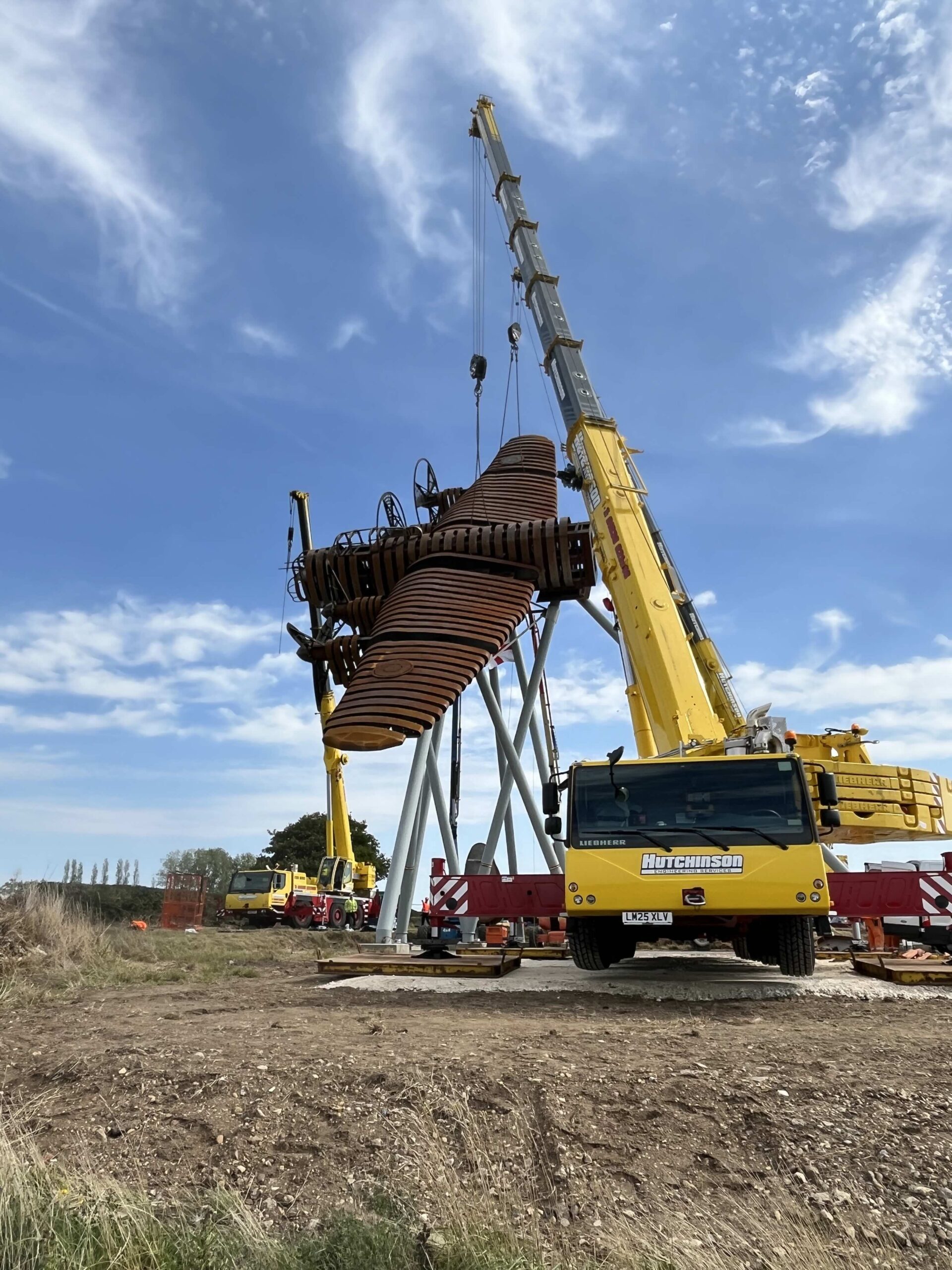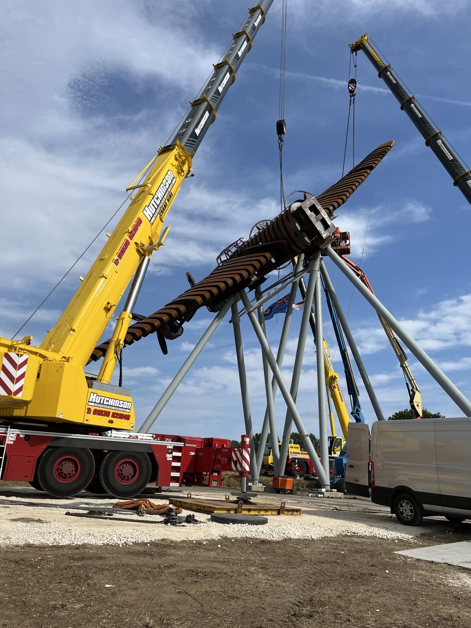 Linzi Broadhead, office manager at the RSS depot in Rotherham, said: “Our equipment was used to lift the fuselage, wings, and tail of the plane. We frequently work with Hutchinson Engineering — it is typical for us to provide rigging gear for use with their fleet of cranes. However, this was a particularly notable project. This is an iconic sculpture — I read one report that said an estimated 35,000 motorists a day will see it from the road as they drive between Newark and Lincoln.”