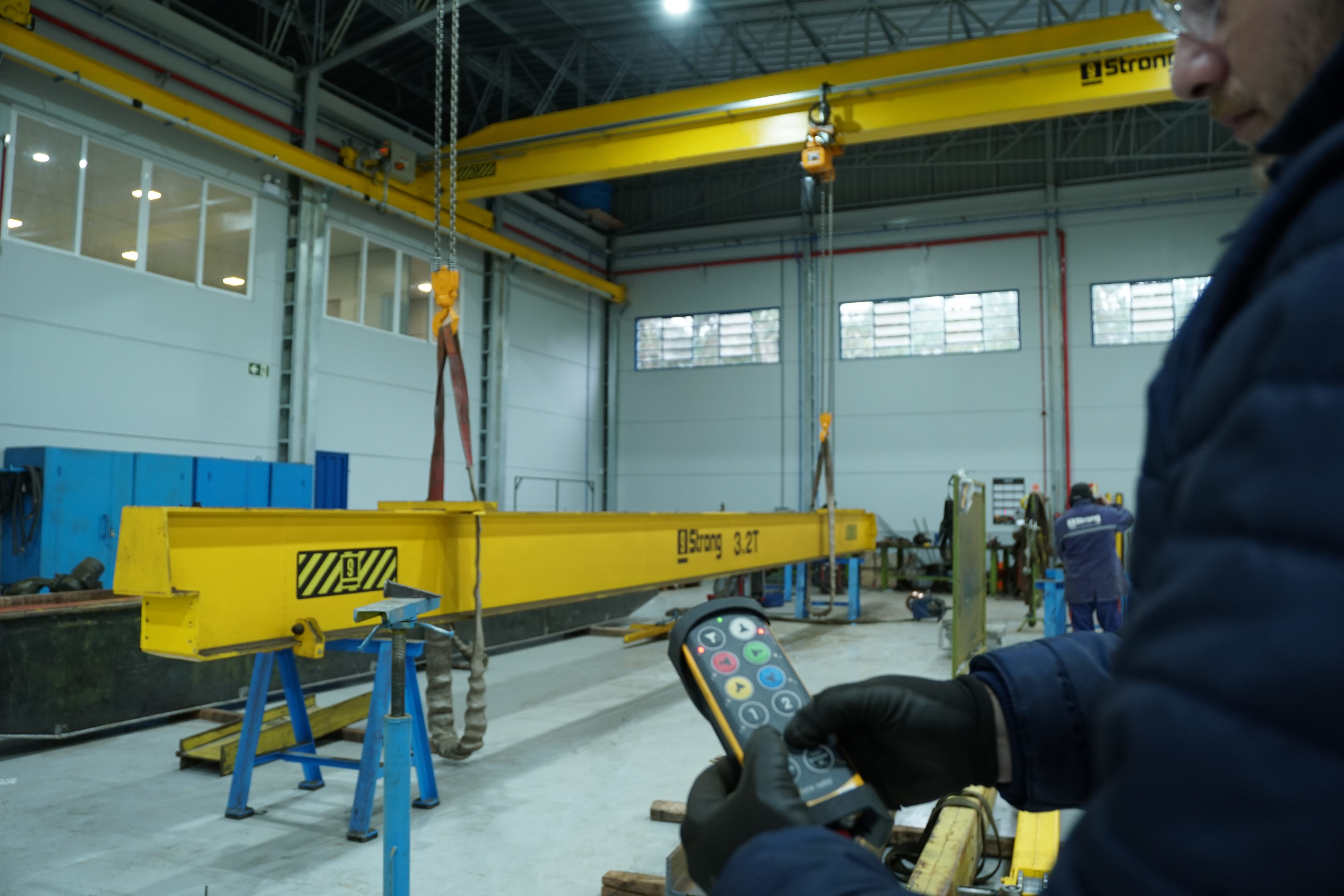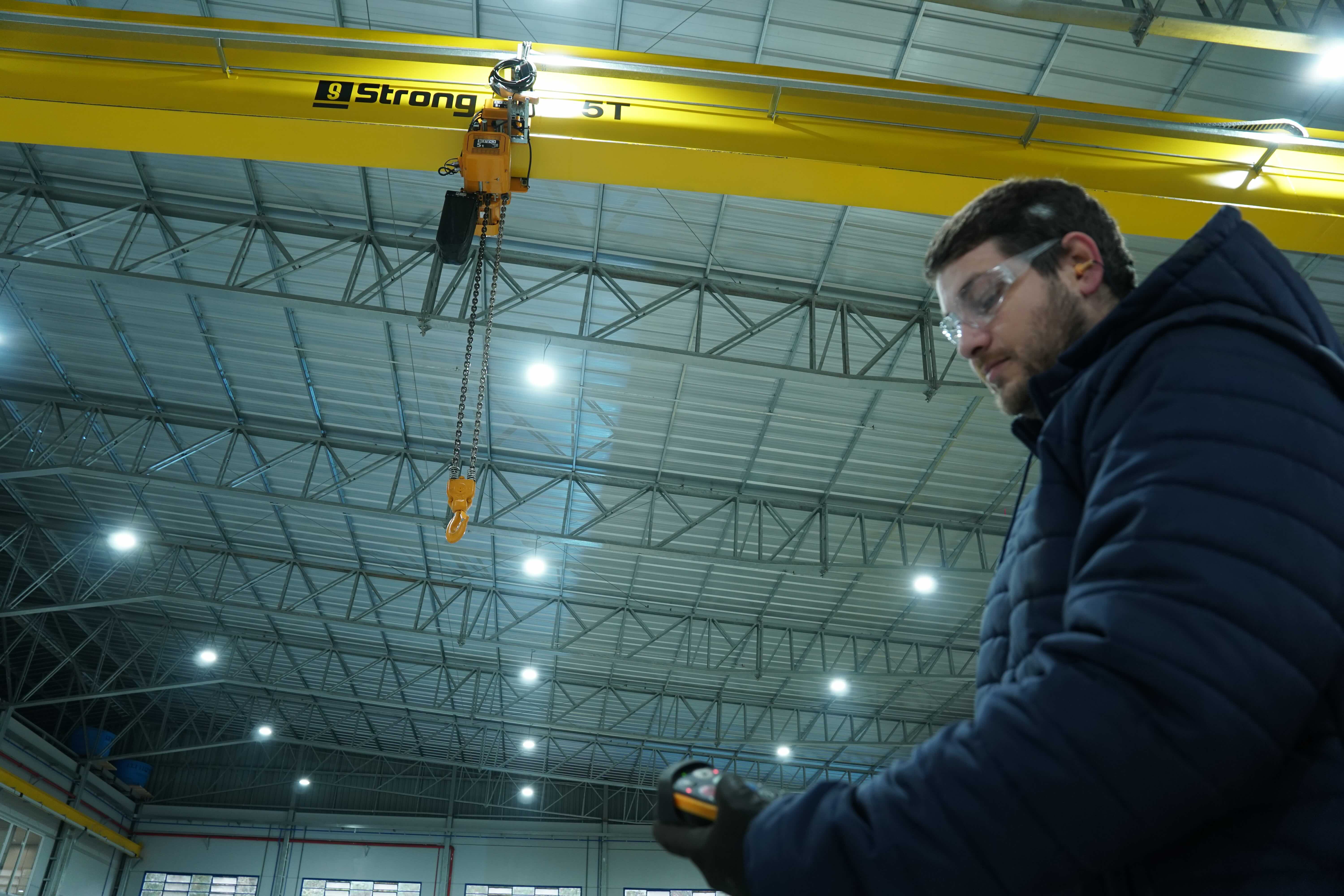 Strong Machines, which is located in Caxias do Sul, has a pair of 5-ton capacity cranes that are frequently operated in tandem to lift runways and other long components. It needed wireless control that would give operators complete freedom of movement, without compromising precision — and Tele Radio’s Tiger product was the perfect solution.