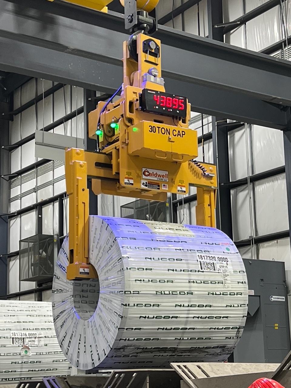 Rockford, Illinois-based manufacturer Caldwell delivered nine coil grabs, two sheet lifters, and five C-hooks, via distributor Simmers Crane Design & Services. The coil grabs are each 60,000-lbs. capacity and include a ‘lock-out’ limit switch to prevent opening while the load is suspended. They also feature an anti-clamp touch plate that protects the coils as the lifter is closing, preventing damage when the legs close. The two sheet lifers are 20,000-lbs. capacity; and the C-hooks, 60,000 lbs.