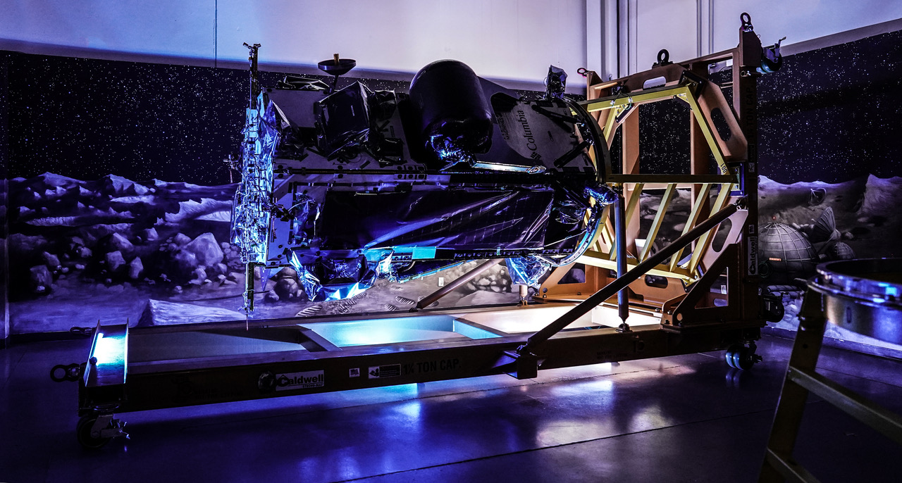 A 2,500-lb capacity transport cradle, customized by The Caldwell Group Inc., has been used to facilitate final assembly of Intuitive Machines’ lunar lander, Nova-C, that will soon land on the Moon.